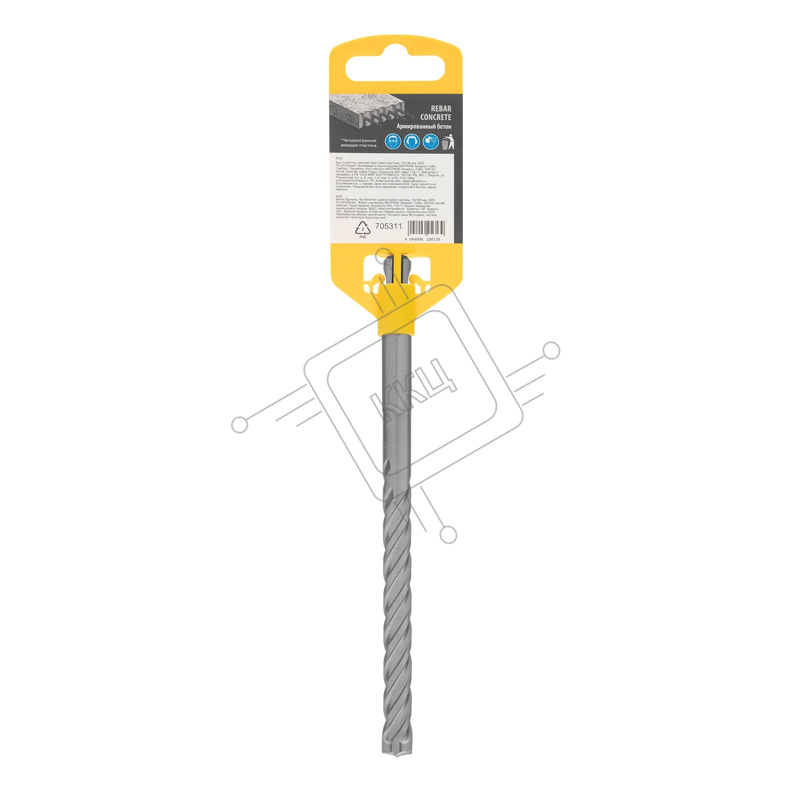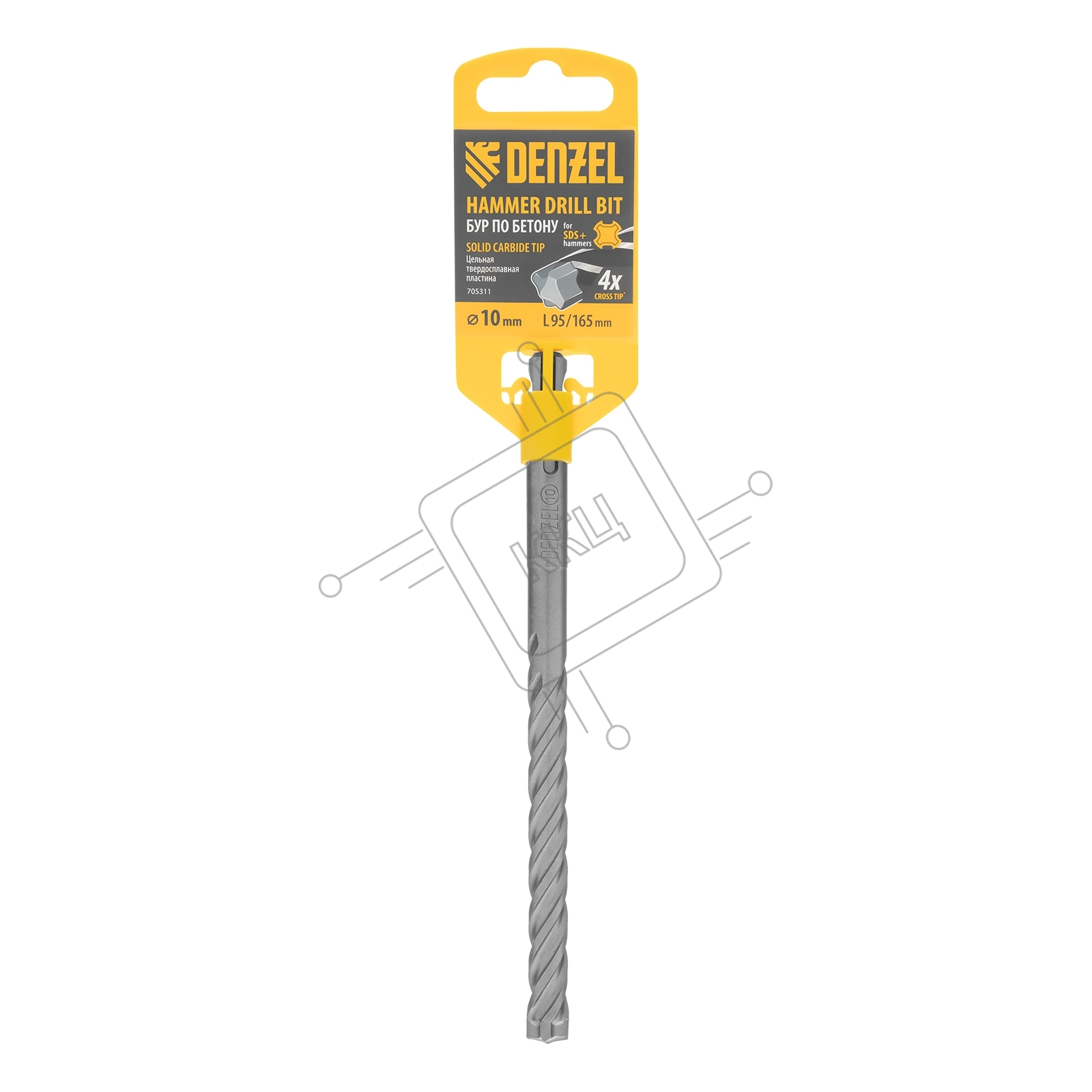 Бур по бетону, цельная крестовая пластина, 10x165 мм, SDS PLUSDenzel