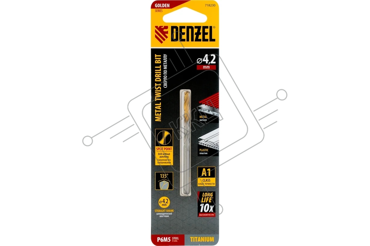 Сверло спиральное по металлу Denzel 4,2 x 75мм, Р6М5, Golden Tip