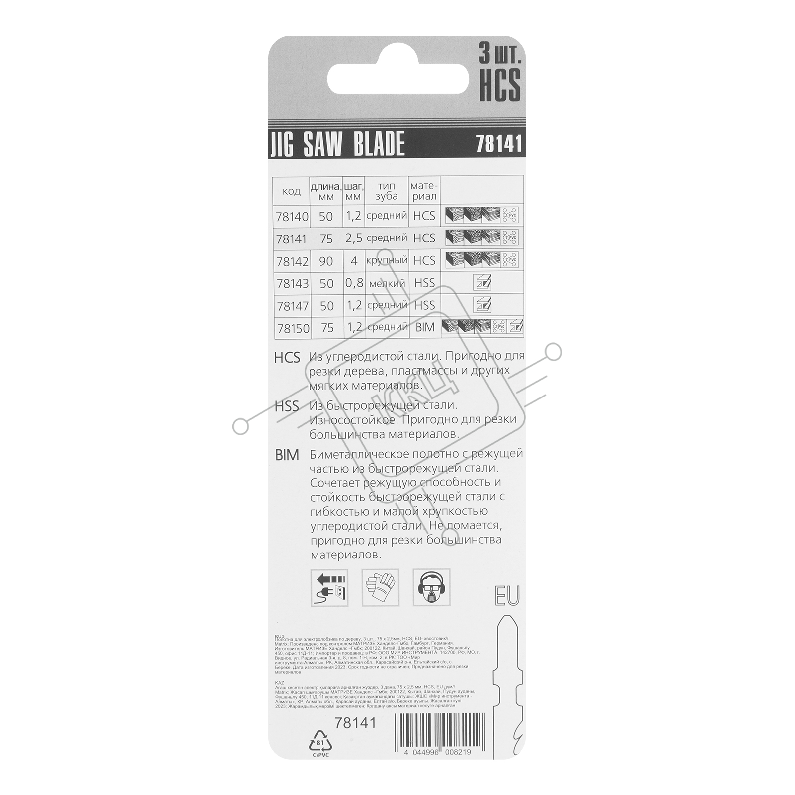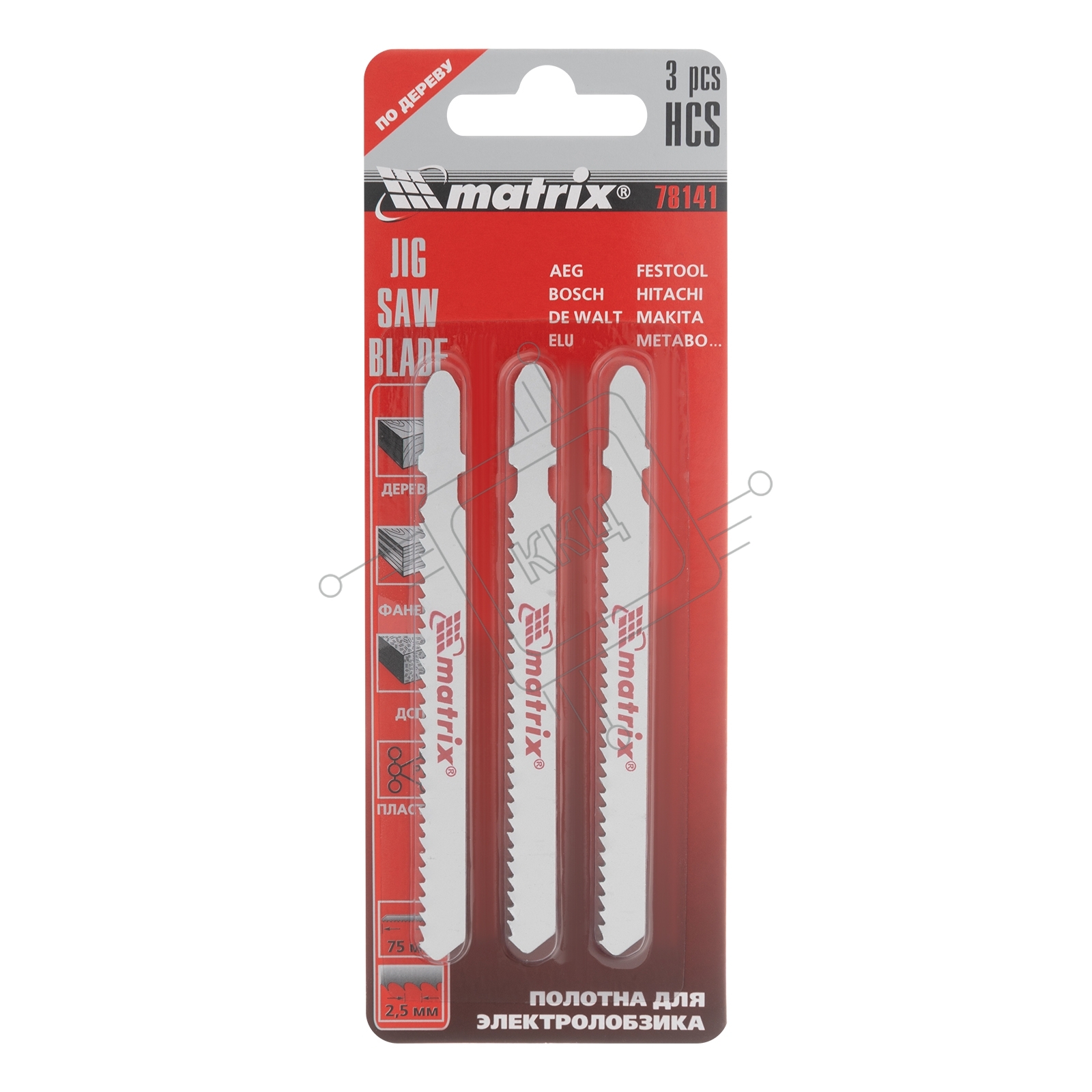 Полотна для электролобзика Matrix по дереву, 3 шт., 75 х 2,5мм, HCS, EU- хвостовик