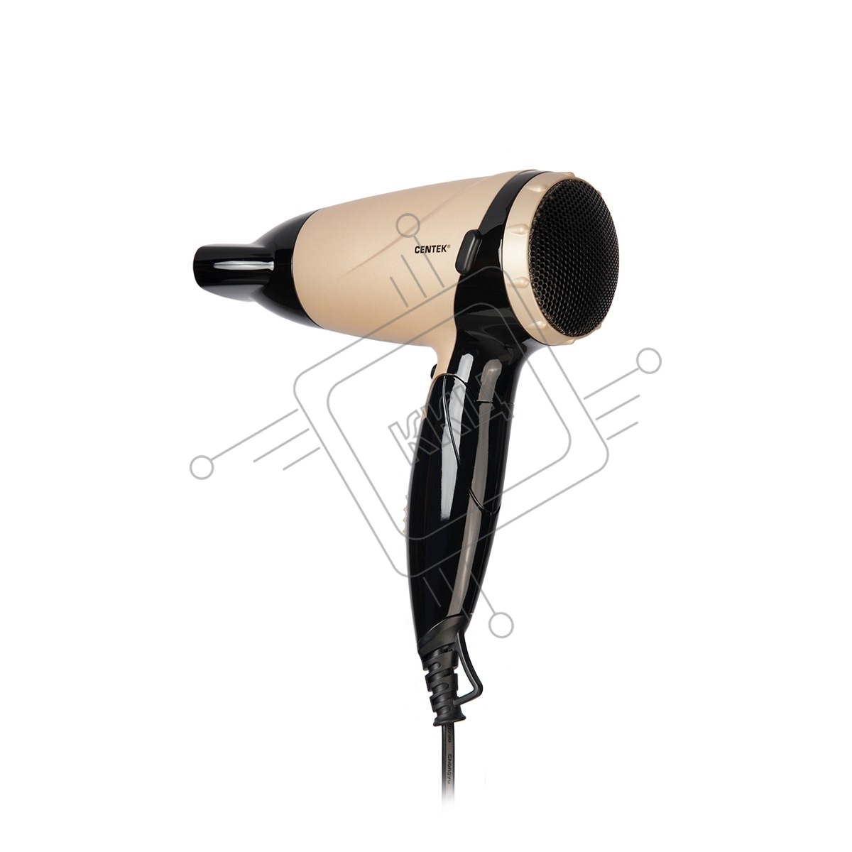 Фен Centek CT-2209 BLG черный/золотой перламутр 1600Вт, складная ручка, концентратор