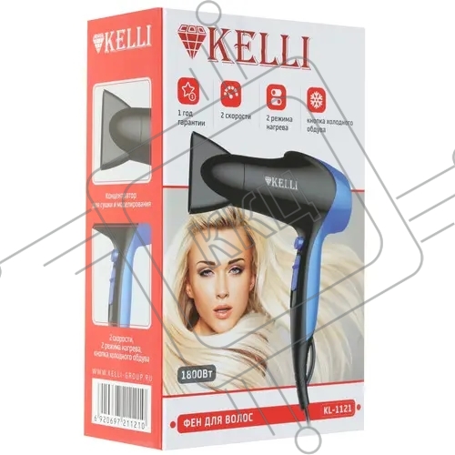 Фен Kelli KL-1121 черный/синий, 1800 Вт