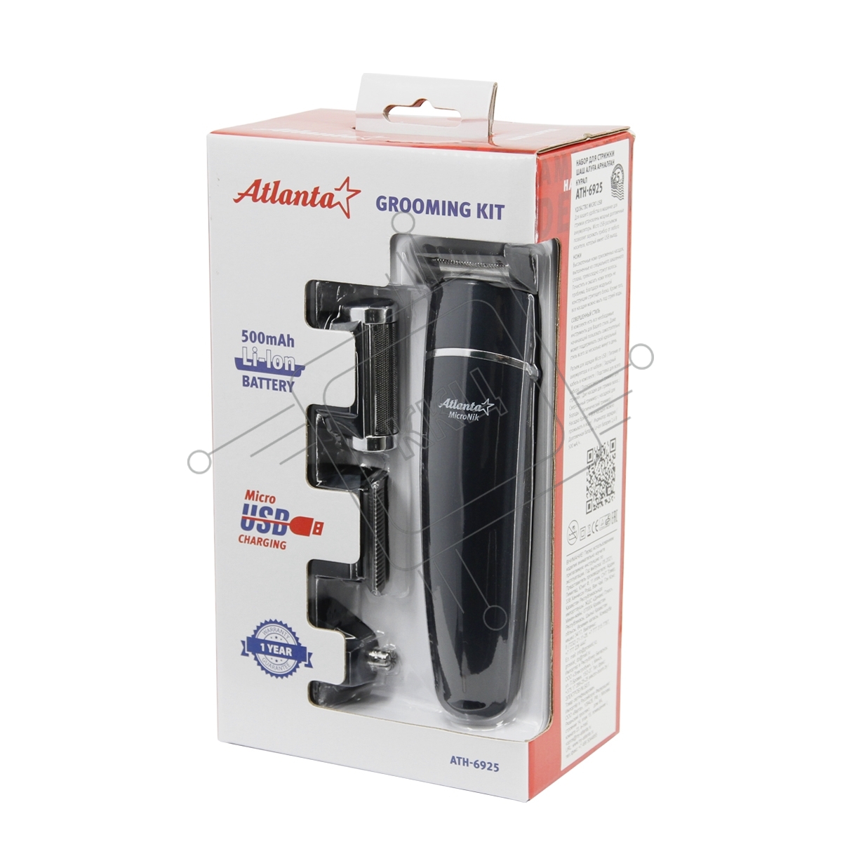 Машинка для стрижки волос ATH-6925 син, сеть, 10Вт, нож из титана, 4 насадки, возможность регулировки