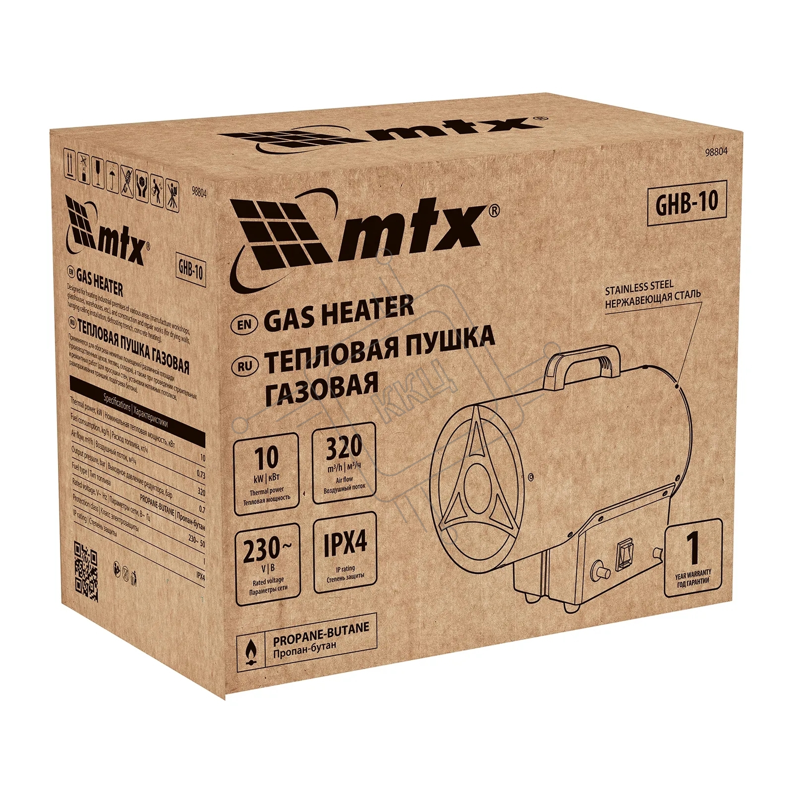 Газовая тепловая пушка MTX GHB-10, 10 кВт, 320 м3/ч, пропан-бутан