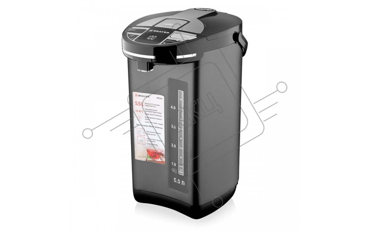 Термопот BRAYER BR1091, 1450 Вт, 5,5 л, 2 спос.подач.воды, LCD-дисп, поддерж.темпер,блокировка