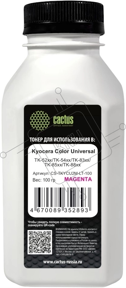 Тонер Cactus CS-TKYCU2M-LT-100 пурпурный флакон 100гр. для принтера Kyocera Color Universal TK-52xx/TK-54xx/TK-83xx/TK-85xx/TK-88xx