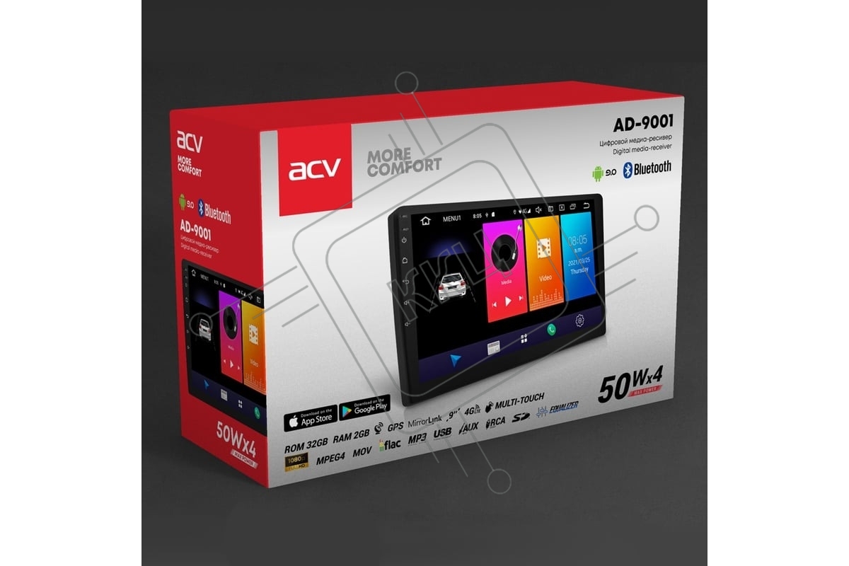 Автомагнитола ACV AD-9001 DSP, 2 DIN, 9", Android 13, Bluetooth, USB Type-A, AUX, GPS, 4G, CarPlay