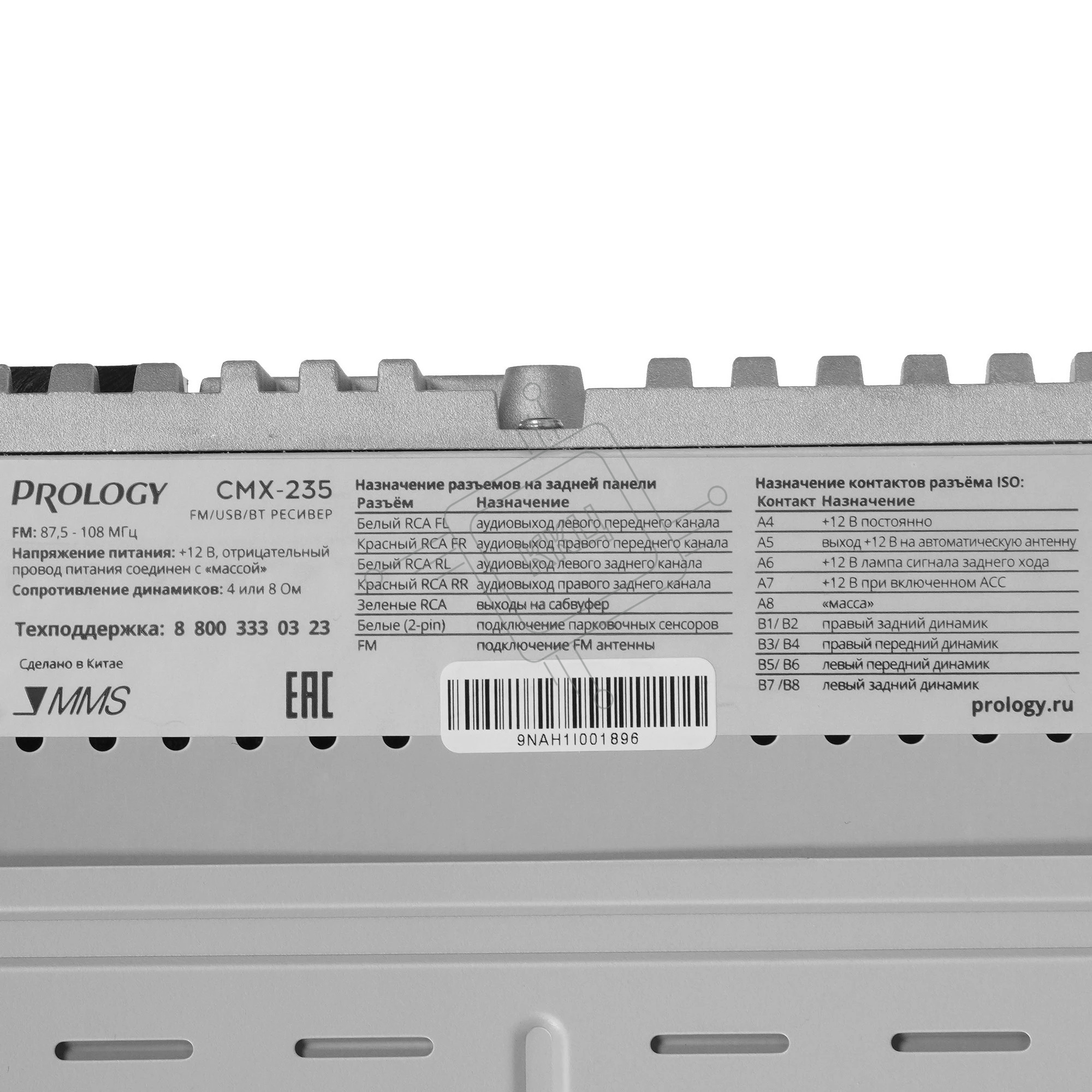 Автомагнитола Prology CMX-235, 1 DIN, Bluetooth, USB Type-A, AUX, пульт ДУ