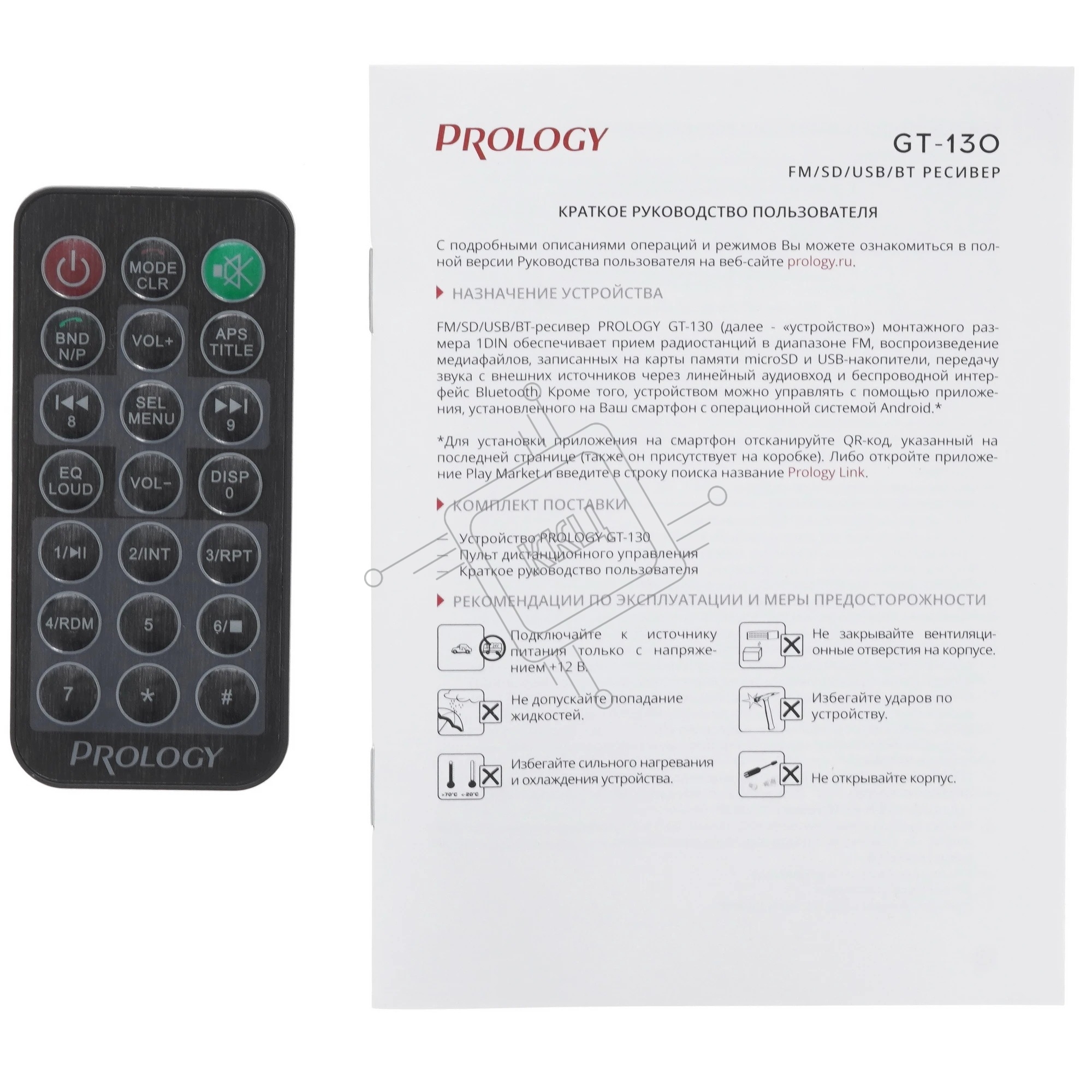 Автомагнитола Prology GT-130, 1 DIN, Bluetooth, USB Type-A, AUX, пульт ДУ
