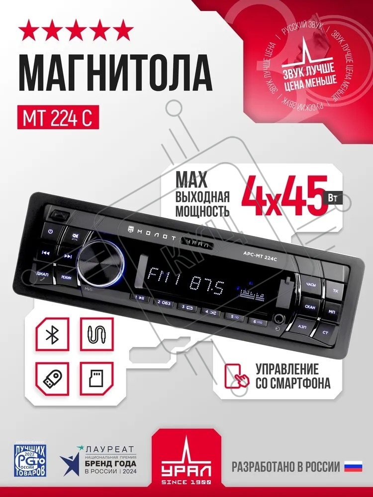 Автомагнитола URAL МОЛОТ АРС-МТ 224С, 1 DIN, Bluetooth, USB Type-A, AUX