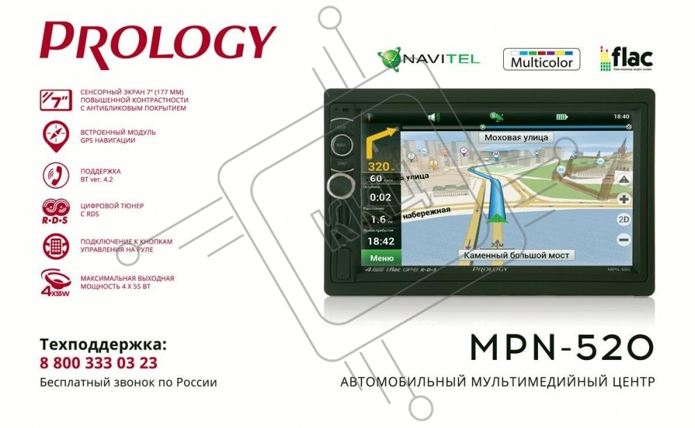 Автомагнитола Prology MPN-520 2DIN 4x55Вт ПО:Navitel