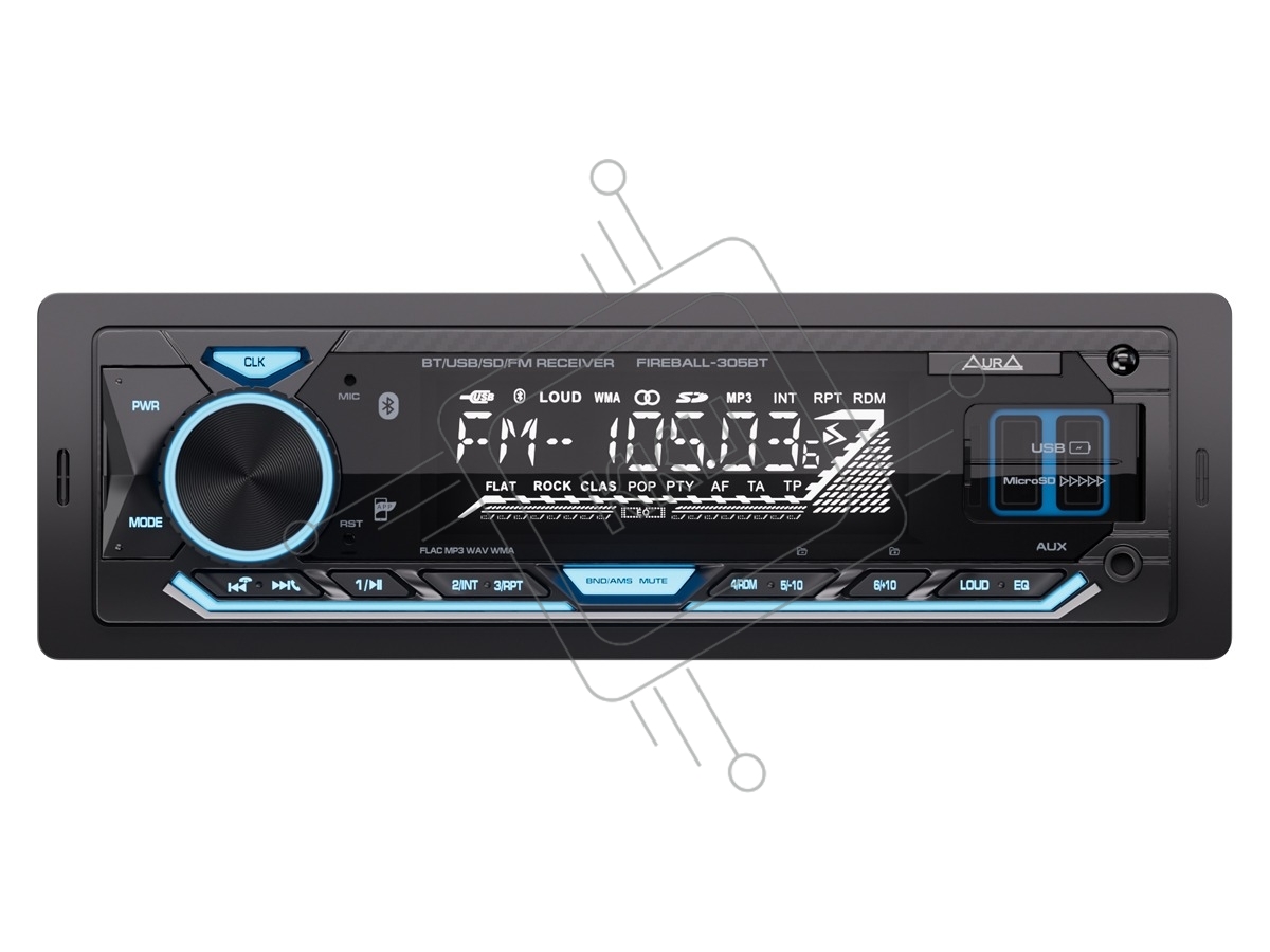 Автомагнитола AURA FIREBALL-305BT, 1 DIN, Bluetooth, USB Type-A, AUX