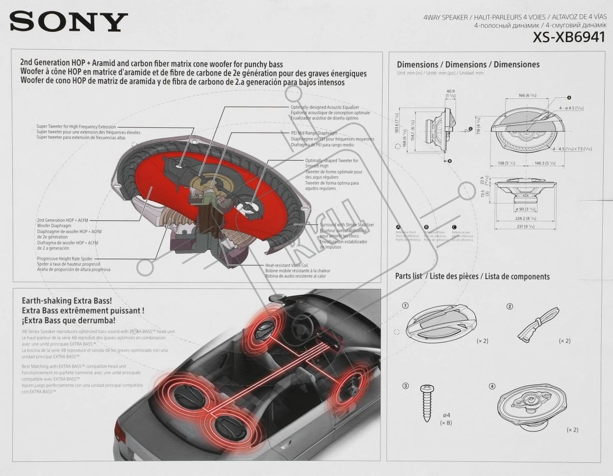 Колонки автомобильные Sony XS-XB6941 650Вт 89дБ 4Ом 16x23см (6x9дюйм) (ком.:2кол.) коаксиальные четырехполосные
