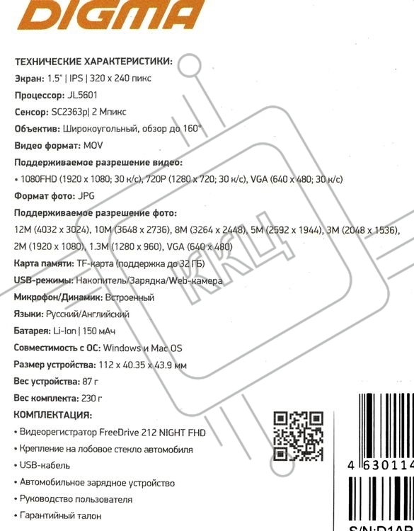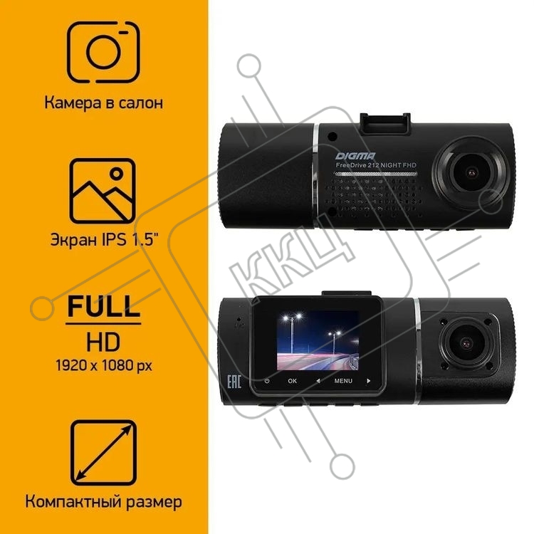 Видеорегистратор Digma FreeDrive 212 NIGHT, 1920x1080, 1.5", с камерой заднего вида, G-сенсор, датчик движения
