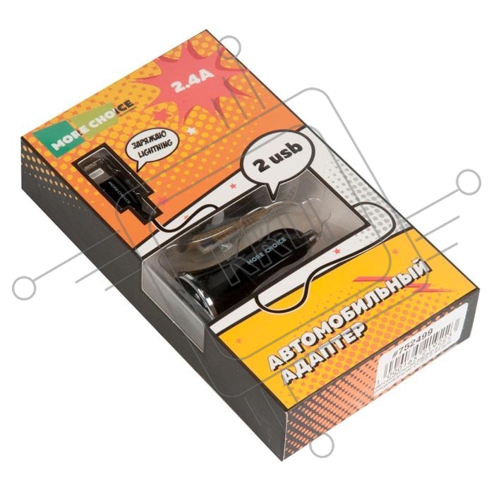 Автомобильная зарядка (от прикуривателя) 2USB 2.4A для Apple 8-pin More choice AC22i черный