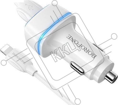 Автомобильное зарядное устройство Borofone Max BZ14, 2xUSB, 2.4А, 12 Вт, кабель Lightning 8-pin, белый (6931474735935)