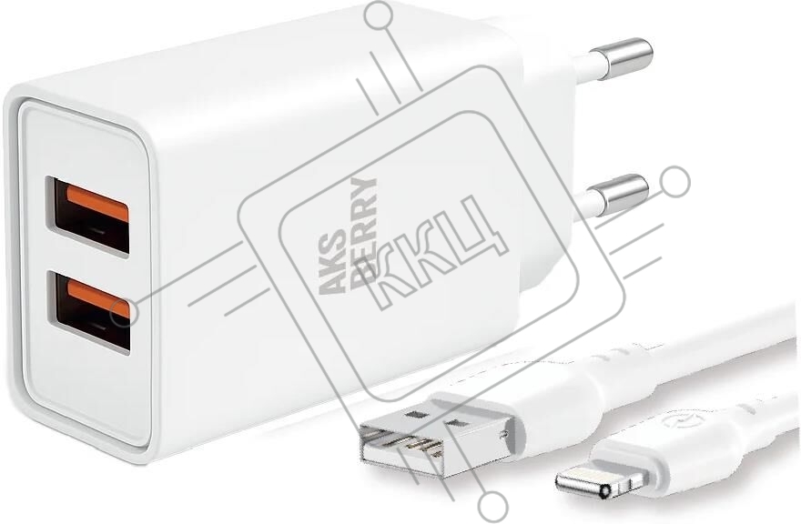 Зарядное устройство Aksberry (6900203220011) T38 2 USB 2.4A + Lightning, белый