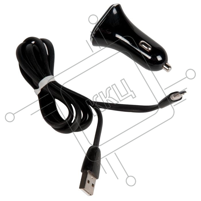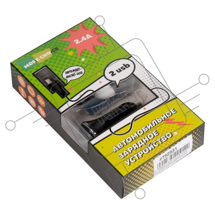 Автомобильная зарядка (от прикуривателя) More choice AC22m, два разъема USB, кабель Micro USB, 2.4A, черный