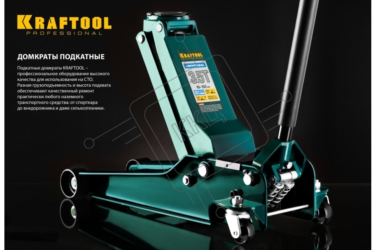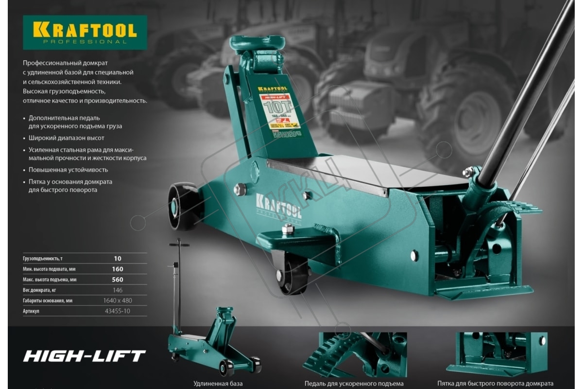 Домкрат Kraftool 43455-10 High-Lift гидравлический подкатной, удлиненный, 10т, 160-560мм