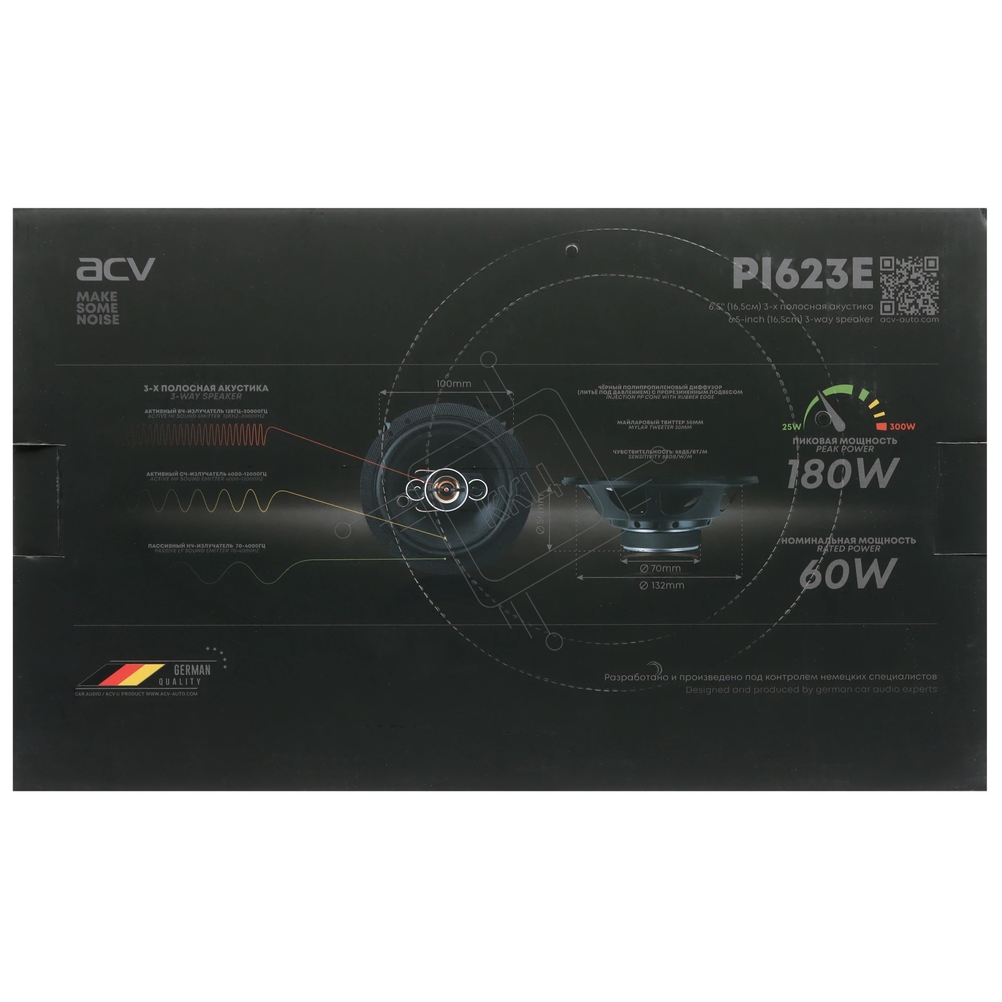 Колонки автомобильные ACV PI-623E 180Вт 88дБ 4Ом 16см (6.5дюйм) (ком.:2кол.) коаксиальные трехполосные