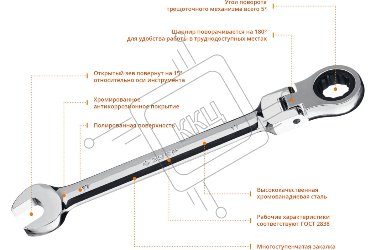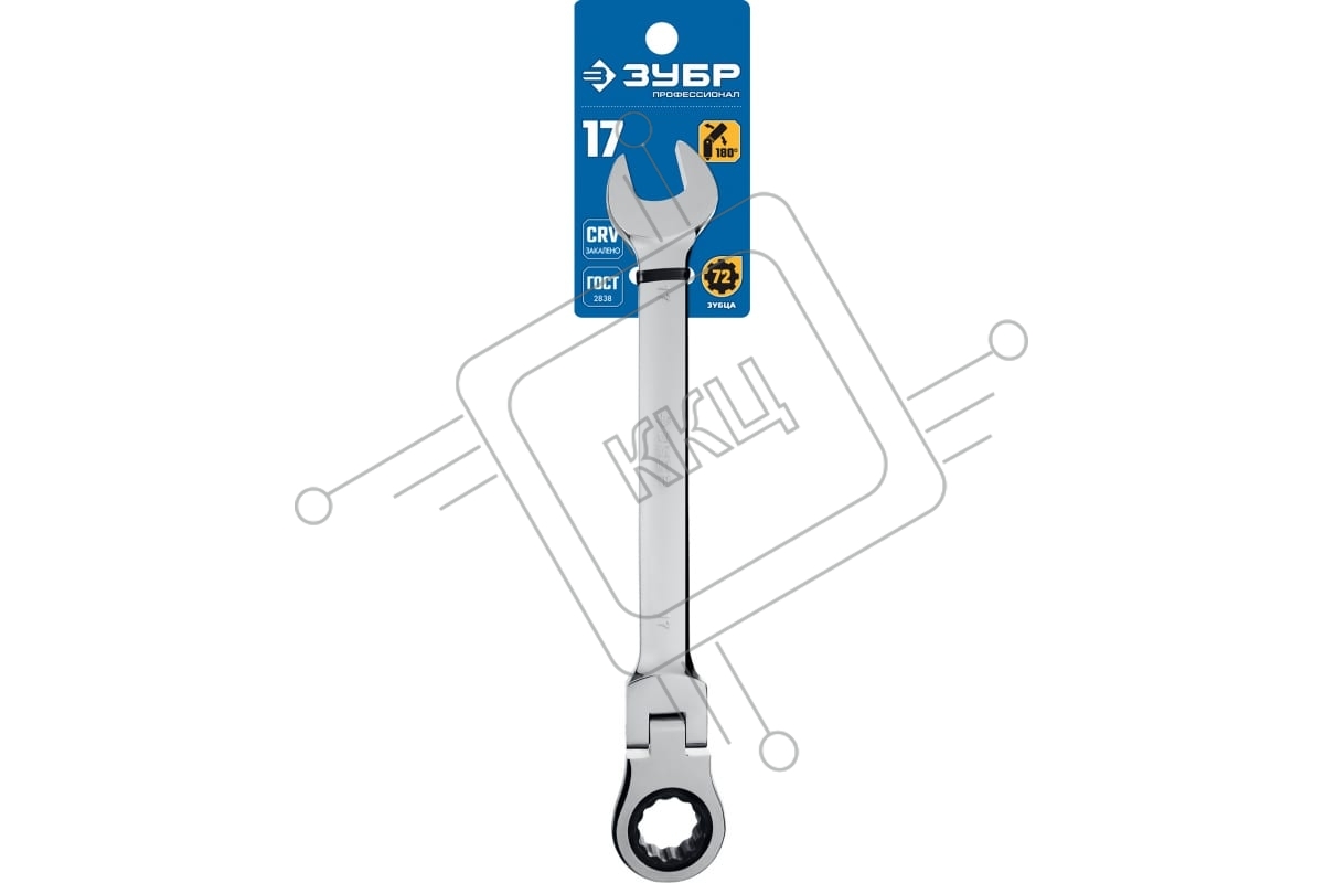 Комбинированный гаечный ключ ЗУБР трещоточный шарнирный 17 мм