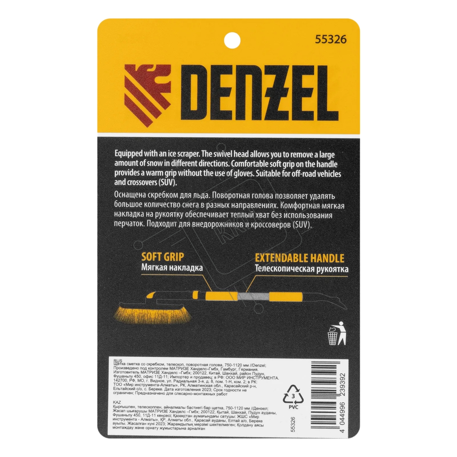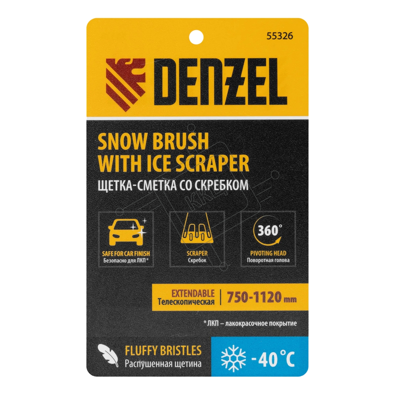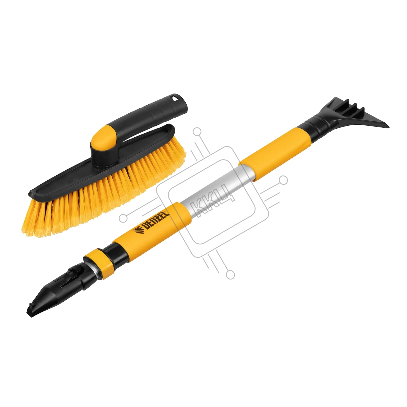 Щетка сметка со скребком Denzel телескоп, поворотная голова, 750-1120 мм