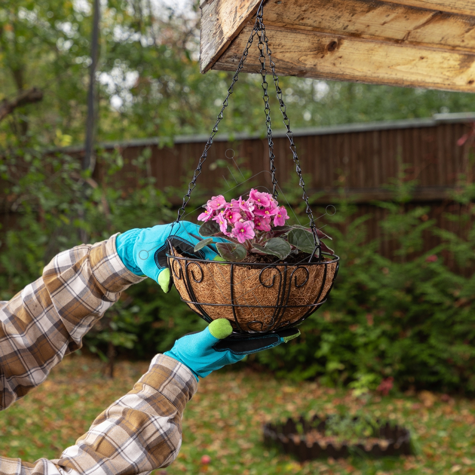 Кашпо подвесное с декором, с кокосовой корзиной, диаметр 25 см Palisad