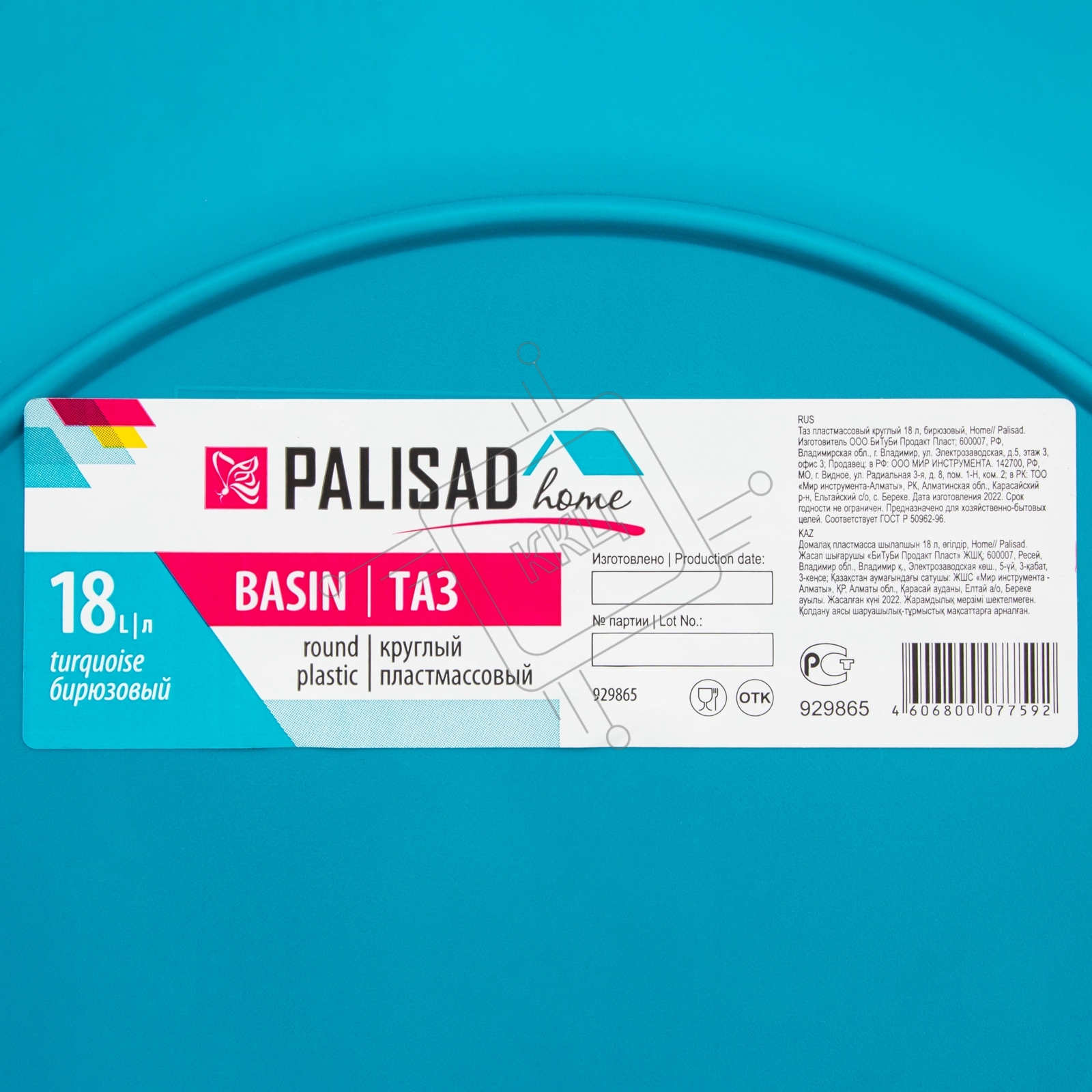 Таз пластмассовый круглый 18 л, бирюзовый, HomePalisad