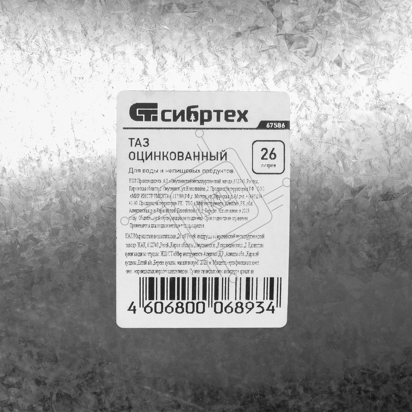 Таз оцинкованный 26 л, Россия Сибртех