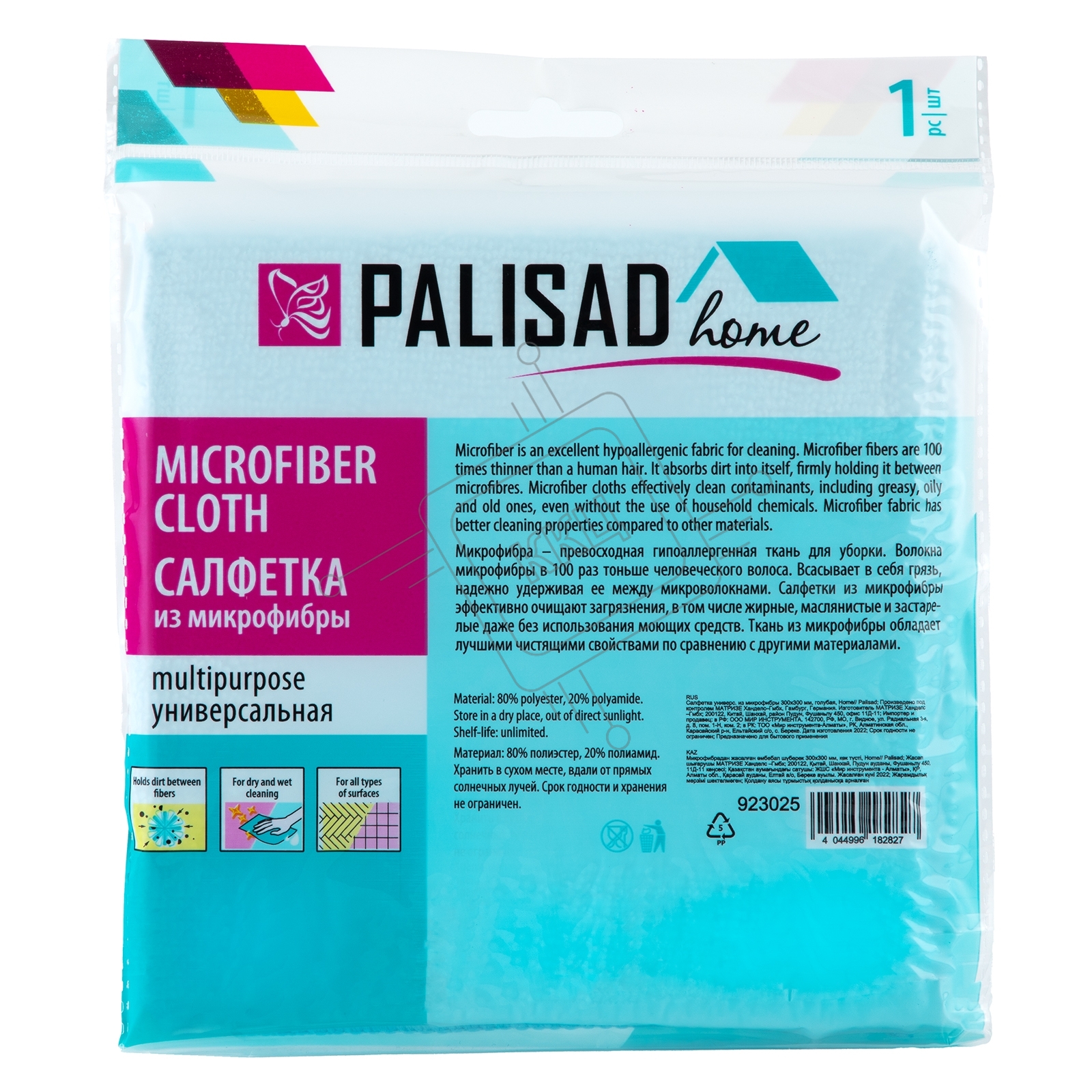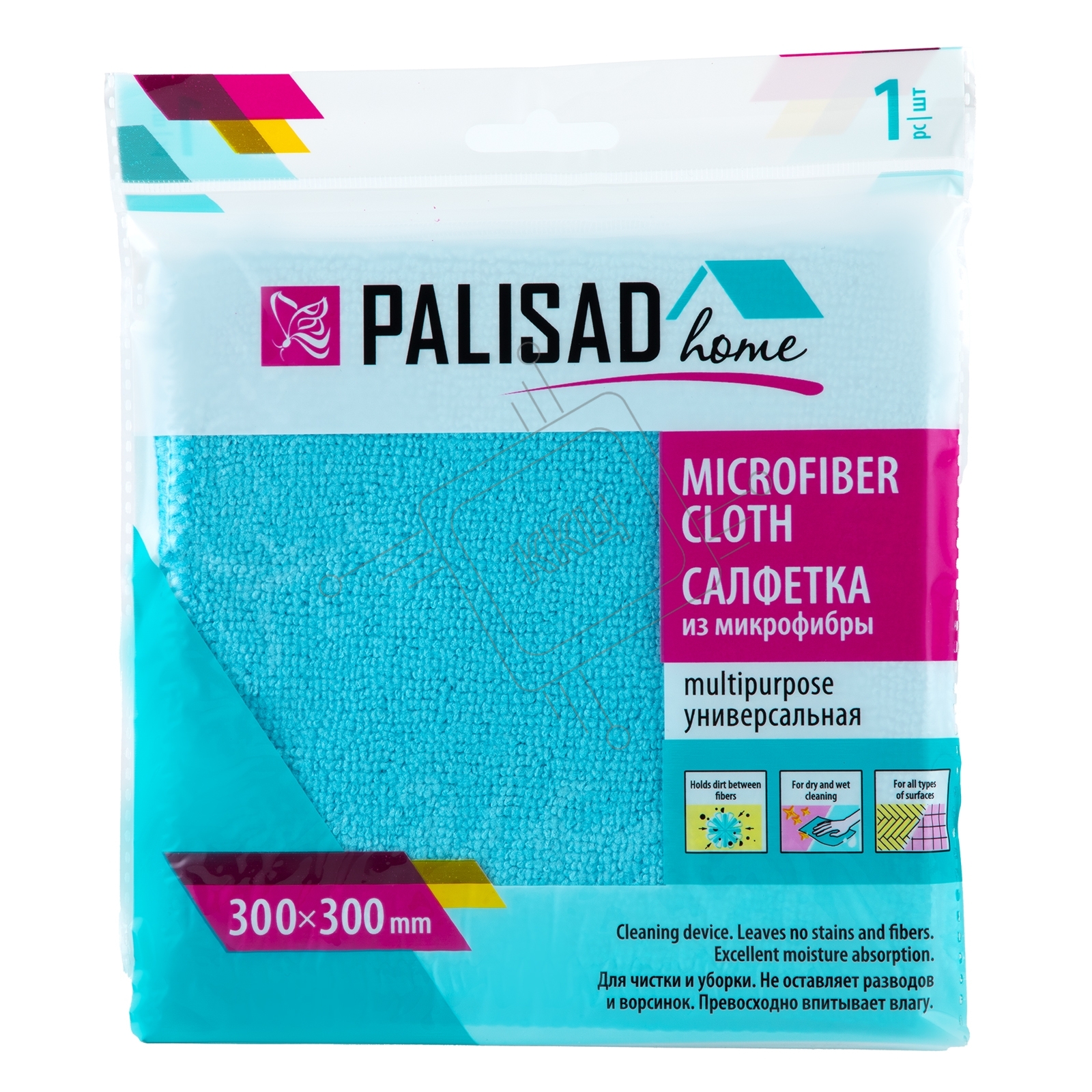Салфетка универс. из микрофибры 300x300 мм, голубая, Home Palisad