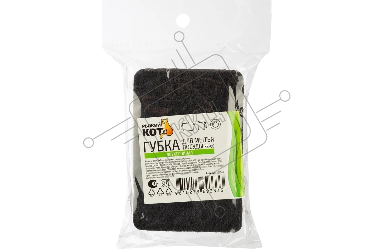 Губка для мытья посуды двухслойная прямоугольная KS-08 черный (107567)