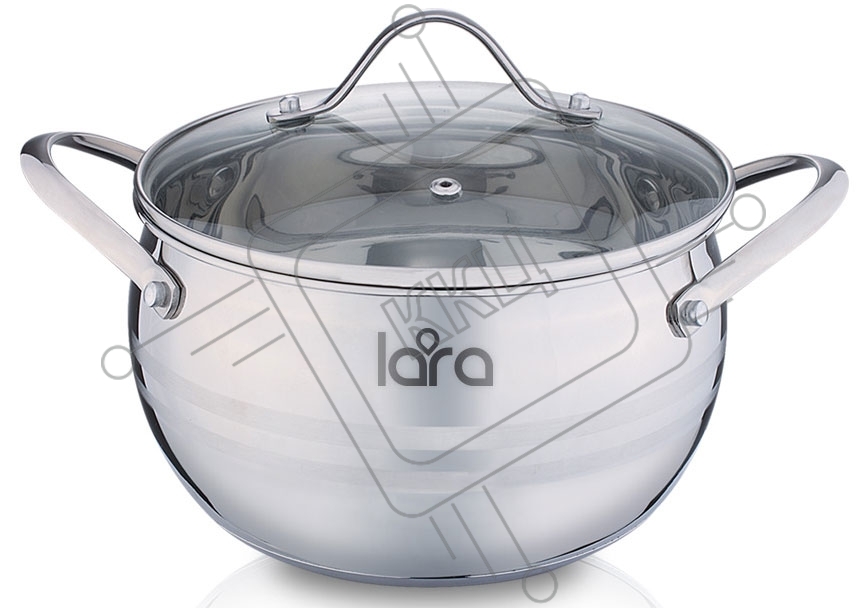 Кастрюля LARA LR02-32 (нерж) APPLE 18x10,5см,2.7л,стал.ручки,капсулир индукц дно,крышка стекло