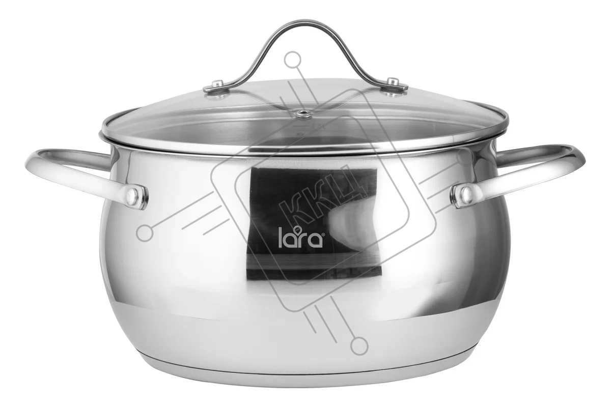 Кастрюля LARA LR02-35 APPLE 6,1 л 24x13,5 см, нержавеющая сталь, крышка стекло