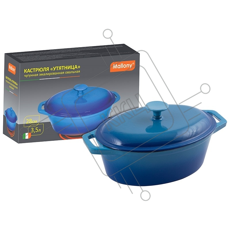 Кастрюля Mallony "УТЯТНИЦА" чугунная эмалированная овальная OCE-24, р-р 24 см, 2,1 л