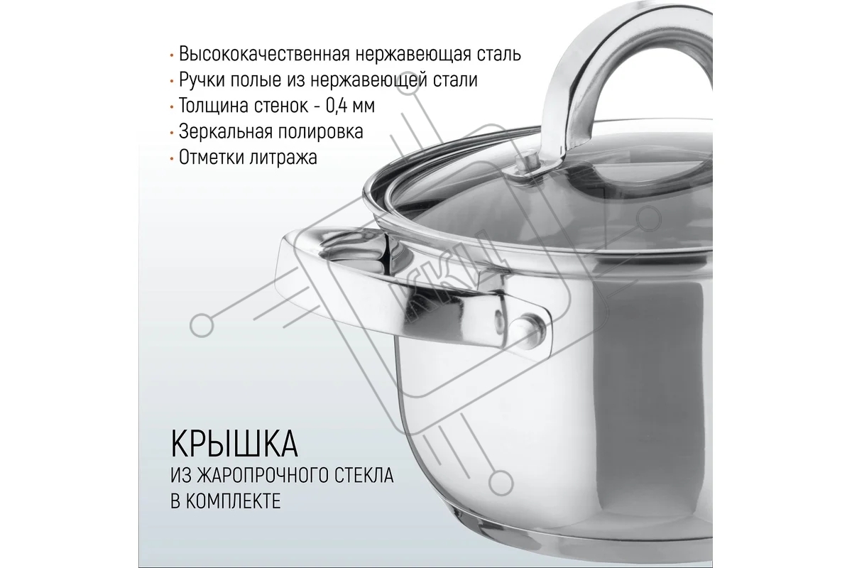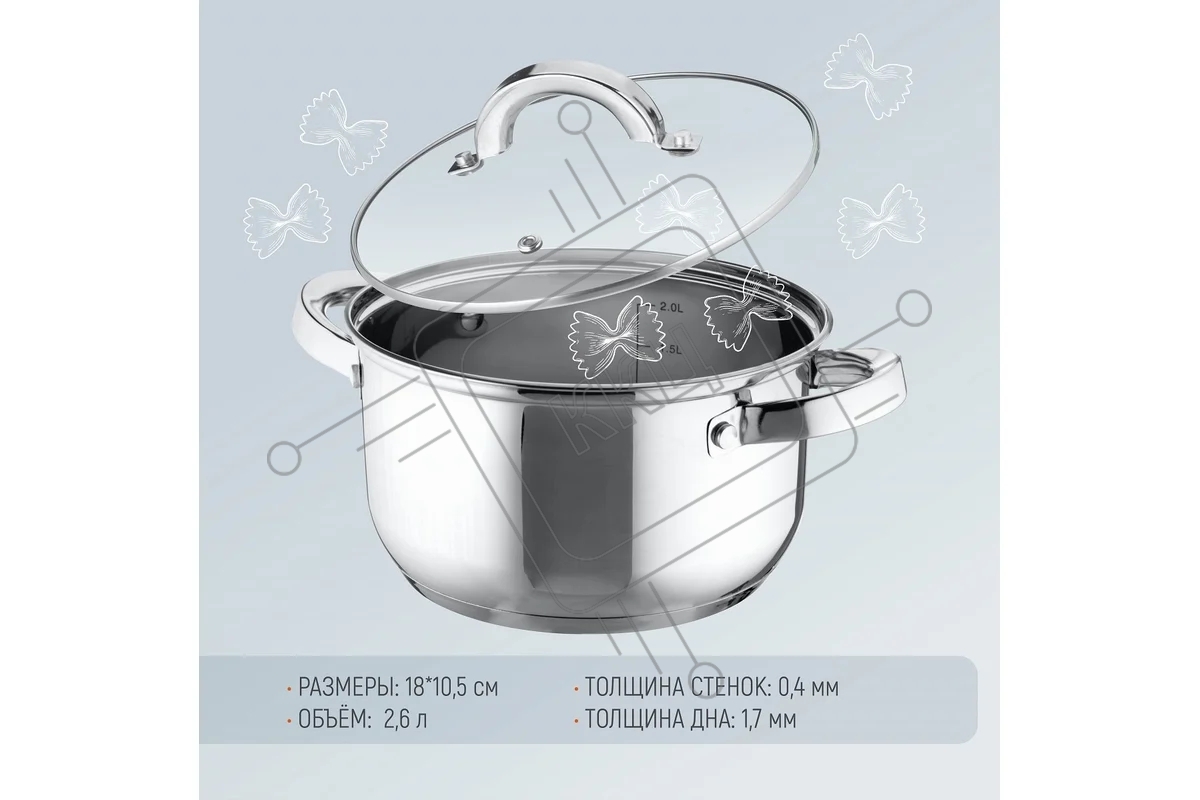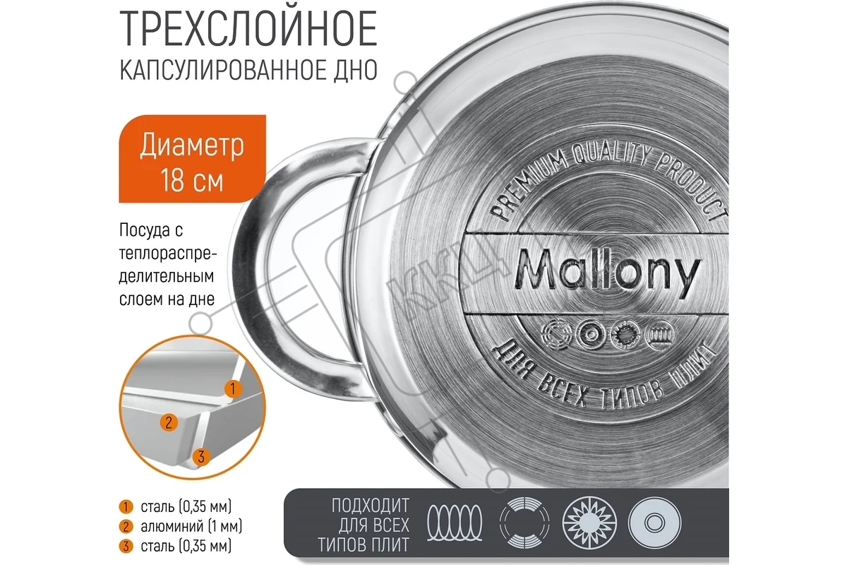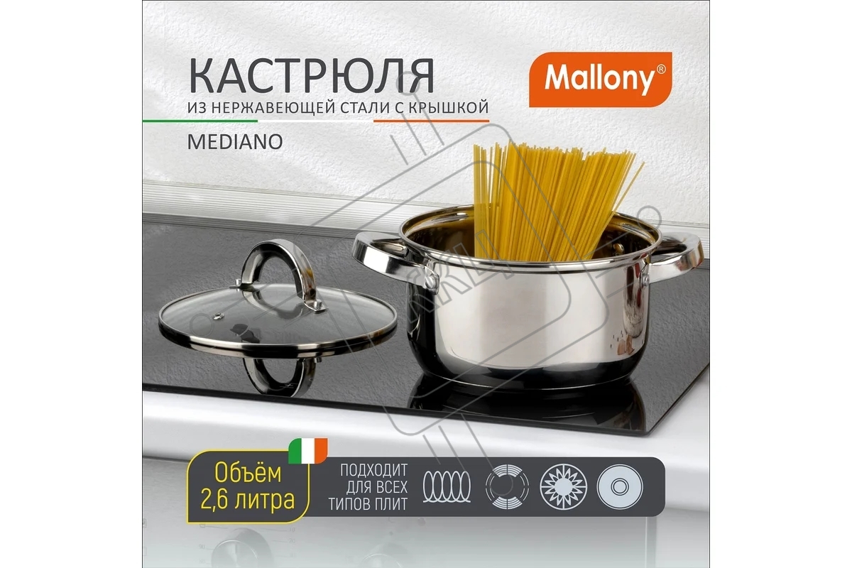 Кастрюля MALLONY Mediano нержавеющая сталь, со стеклянной крышкой, 2,6 л, d-18