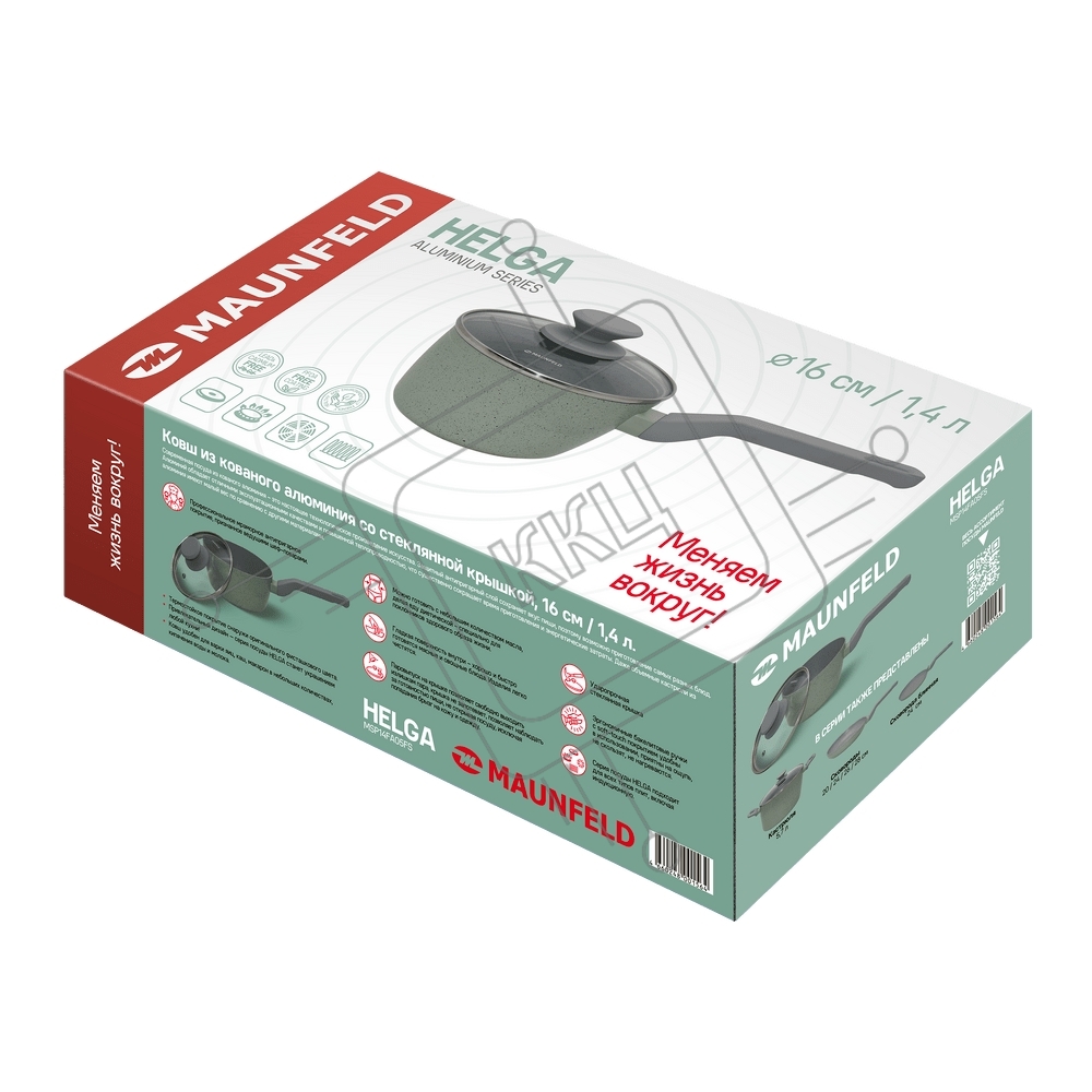 Ковш Maunfeld HELGA MSP14FA05FS из кованого алюминия со стеклянной крышкой, 16 см, 1,4 л.