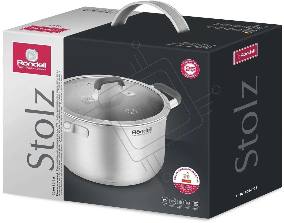 Кастрюля Rondell Stolz RDS-1753, 3.2л, 20см, с крышкой, сталь