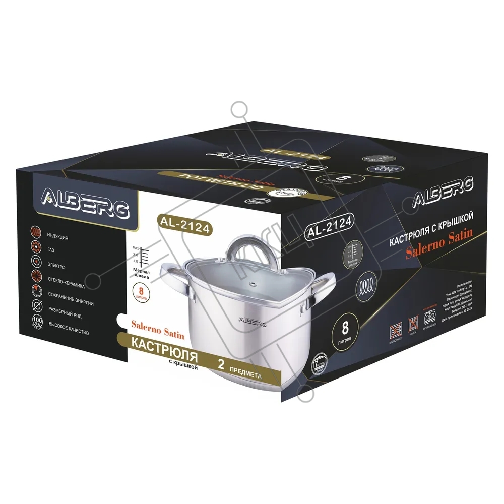 Кастрюля ALBERG AL-2124 с крышкой, 8 л