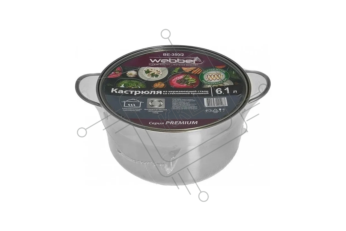 Кастрюля WEBBER BE-350/2 6,1 л, 24 см, из нержавеющей стали со стеклянной крышкой