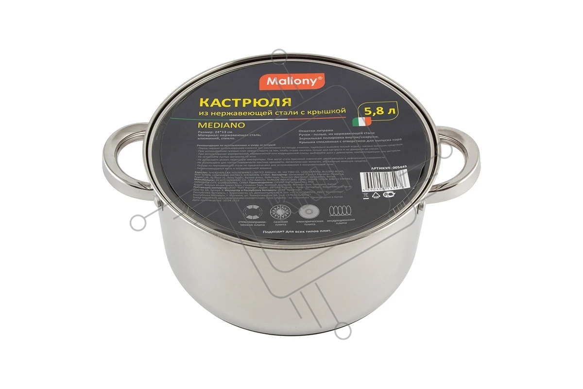 Кастрюля MALLONY Mediano, объем 5,8 л, диа 24 см, (005445)