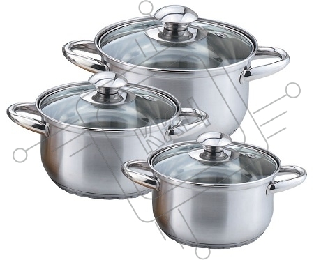 Набор посуды KELLI KL-4201 6 пред.(6 пред.: Кастрюля с жаропрочной стеклянной крышкой 2л. Кастрюля с жаропрочной стеклянной крышкой 2.6л. Кастрюля с жаропрочной стеклянной крышкой 3.6л. Высококачественная нержавеющая сталь 18/10. 5-ти слойное капсульное д