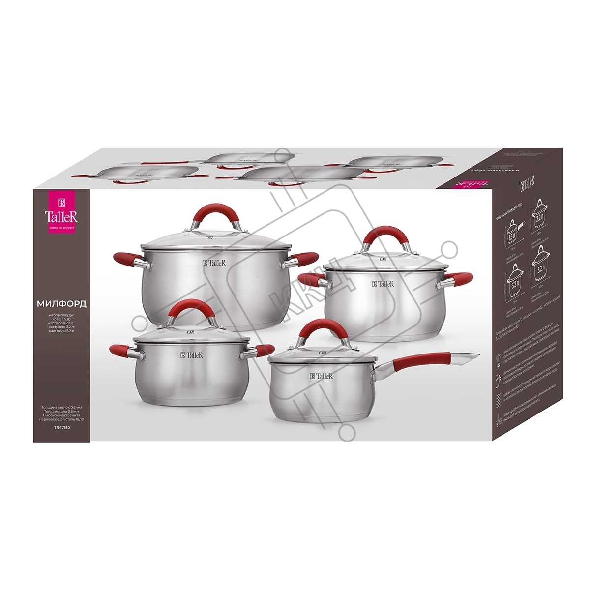 Набор посуды TalleR TR-17150, 8 пр.Толщина стенки - 0,6 мм, толщина дна - 2,8 мм.