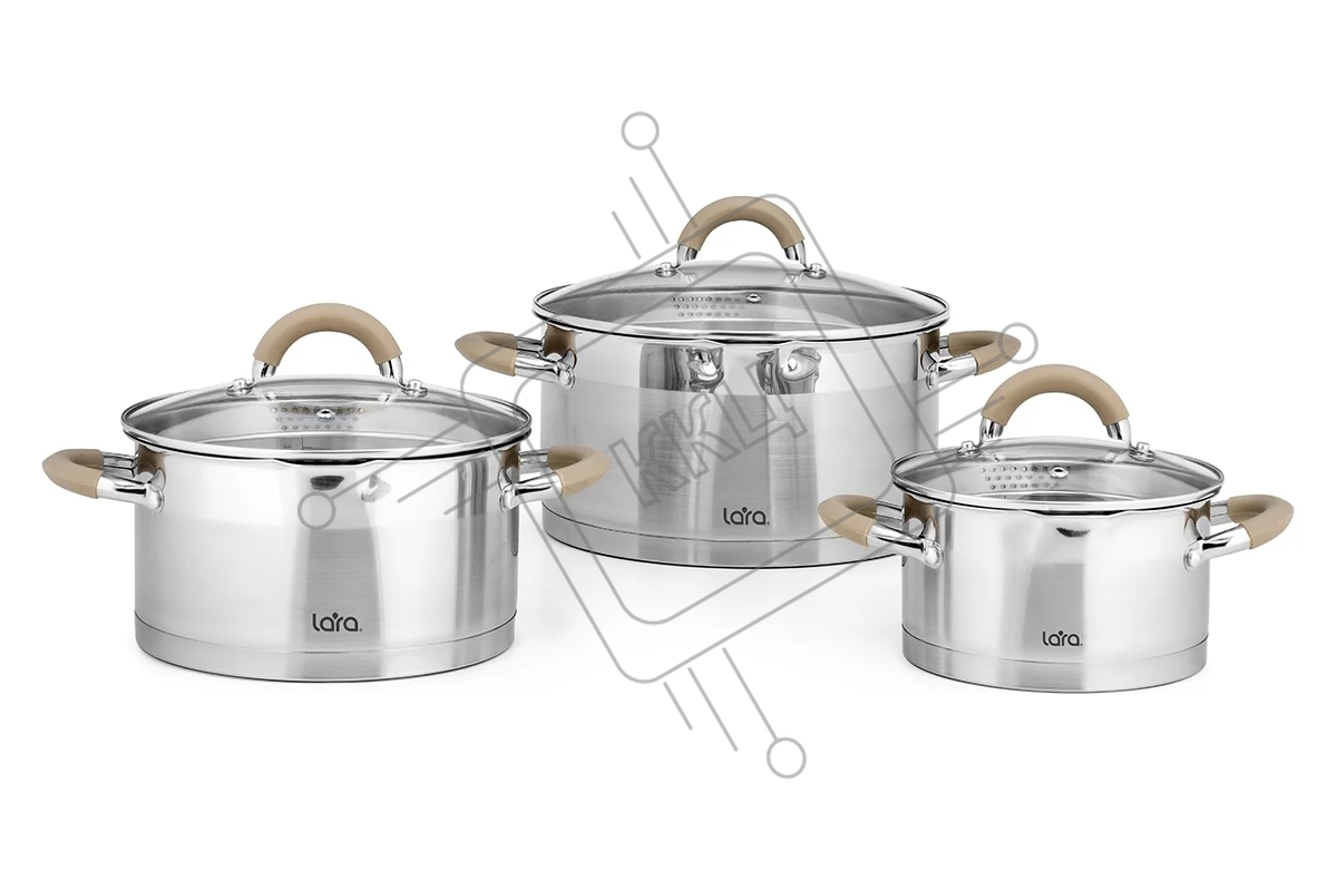 Набор посуды LARA LR02-119 БЕРЛИН 6 пр. 1.7+3.1+5.5 л, 16 см, 20 см, 24 см капсулированное индукционное дно, крышка дуршлаг