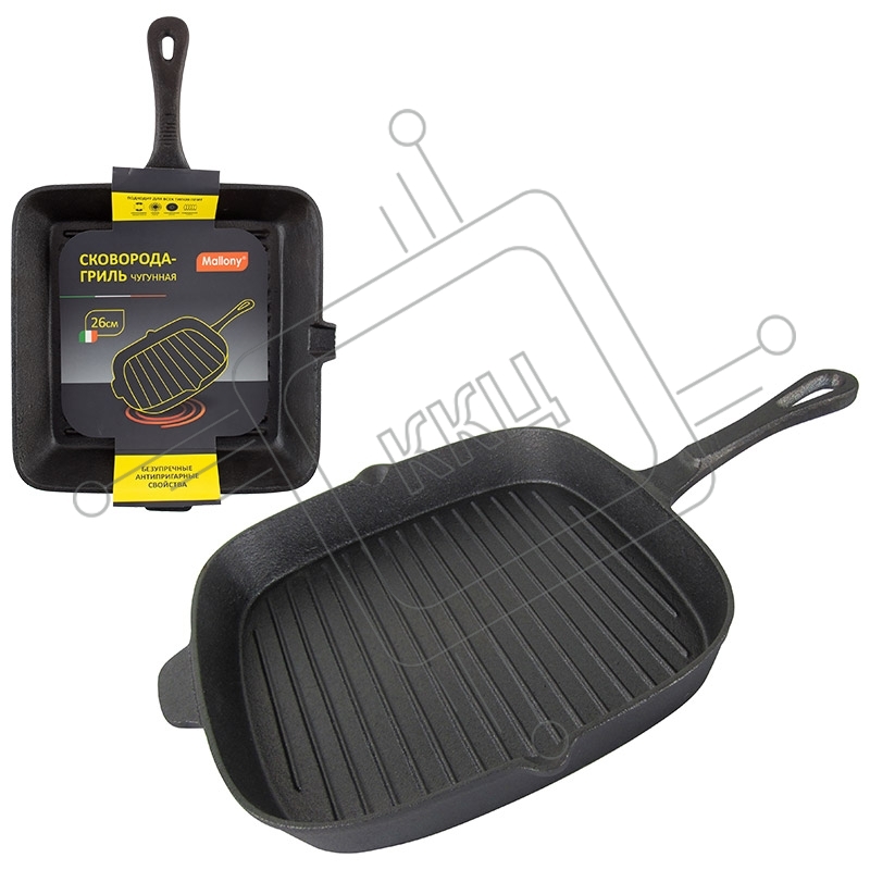 Сковорода-гриль Mallony квадратная чугунная GPR-26C, р-р 26 см, чугунная ручка