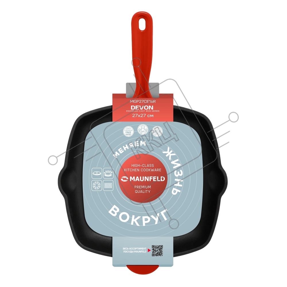 Сковорода-гриль Maunfeld DEVON MGP27CE16R из эмалированного чугуна, 27х27 см