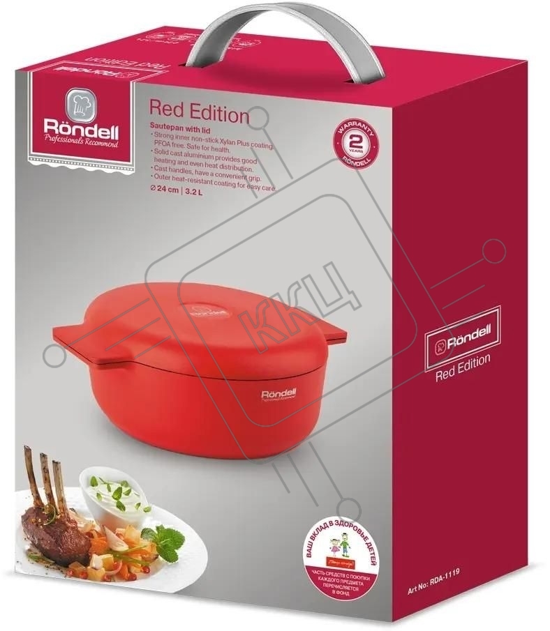 Сотейник Rondell Red Edition RDA-1119, 24см, с крышкой, красный