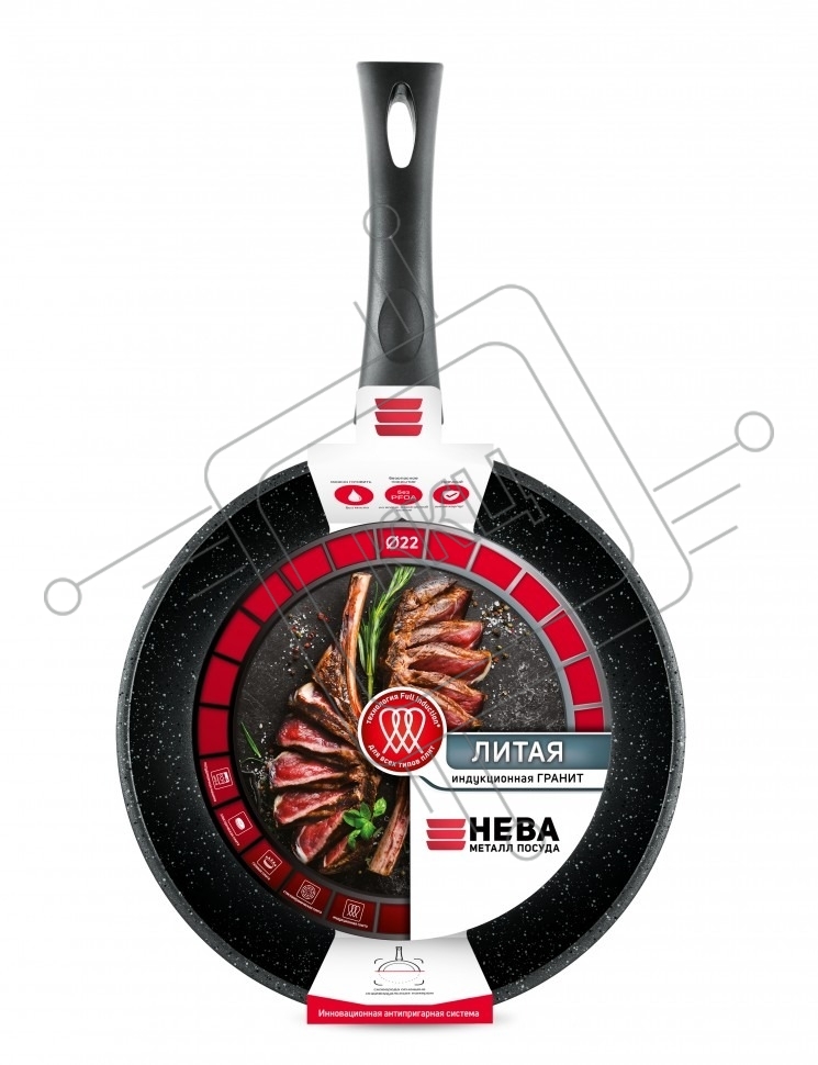Сковорода НЕВА МЕТАЛЛ ПОСУДА L18122i 22 литая Индукция Гранит н/р