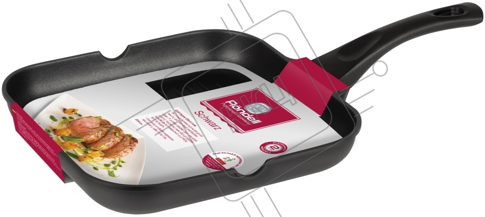 Сковорода-гриль Rondell Schwarz RDA-1683 квадратная 28см покрытие: Xylan Plus ручка несъемная (без крышки) черный