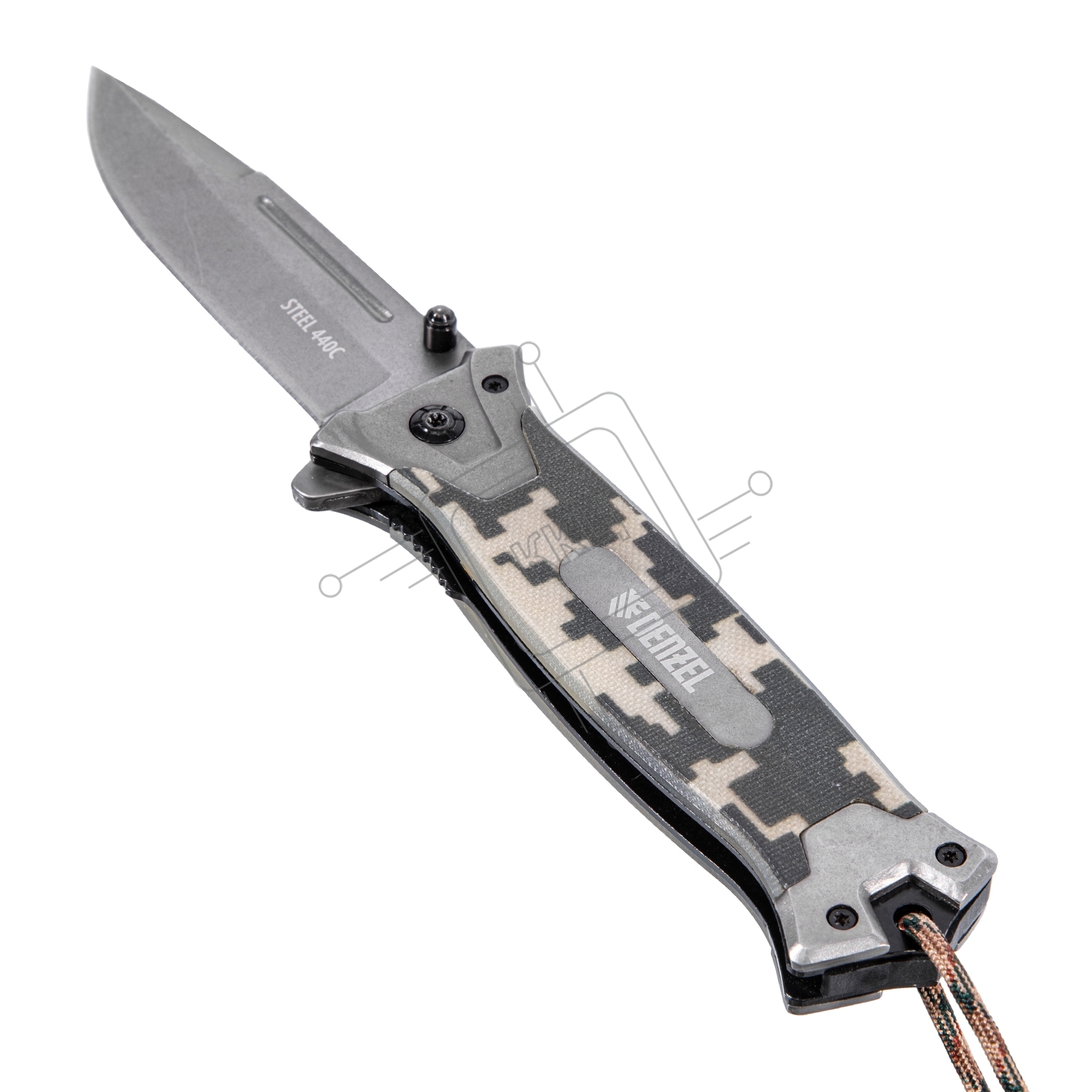 Нож складной Denzel, многоцелевой, системы Liner-Lock, с накладкой G10 на прямой рук-ке+стеклобой 79208