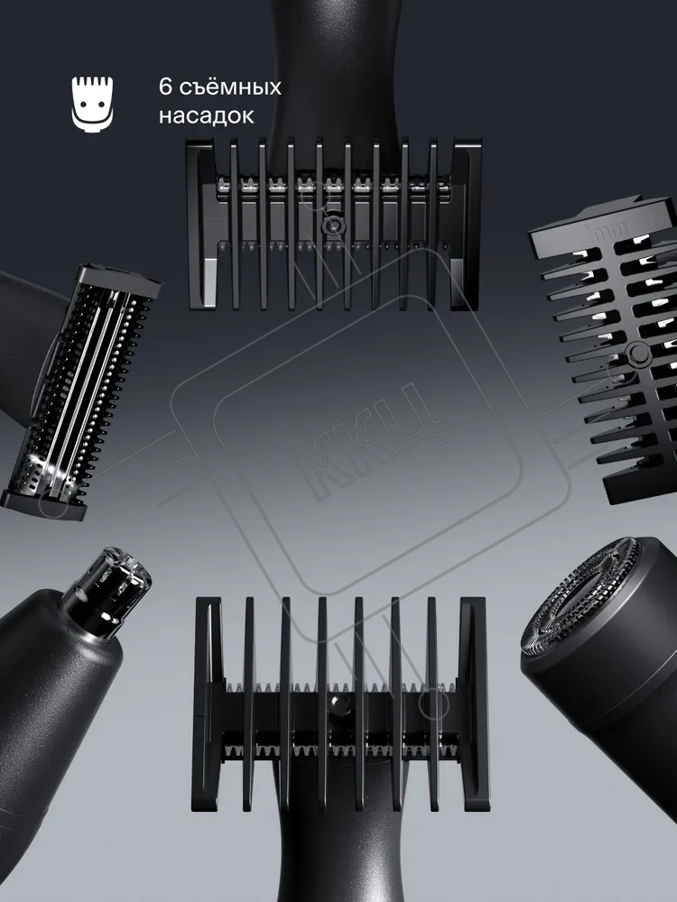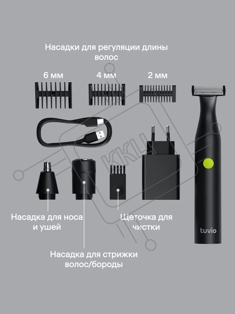 Триммер для стрижки волос Tuvio TR-6DG, 6 съ емных насадок, серый