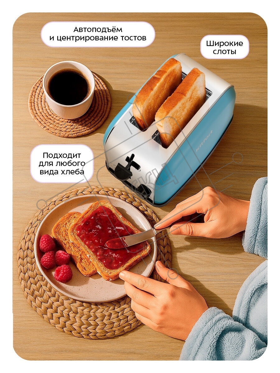 Тостер Kitfort КТ-2014-4 850Вт голубой
